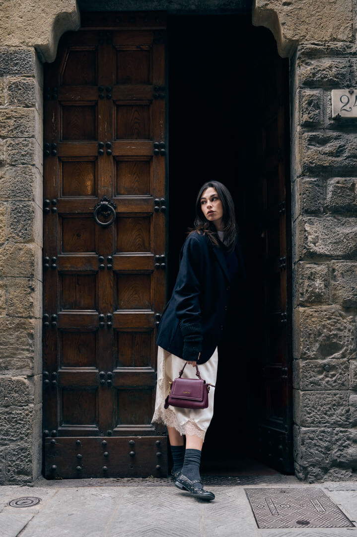 Ogni borsa è pensata per chi attraversa la città come fosse una scena: osservatrice, consapevole, sempre pronta a trasformare un dettaglio in un’idea. Per chi trova bellezza in un riflesso sul vetro, in una strada ancora addormentata, in un colore che un attimo prima non aveva notato.